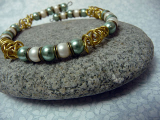 This bracelet features handmade wire beads! It's inspired by Steampunk, but I think it's also very fantasy looking, what'dya thunk?