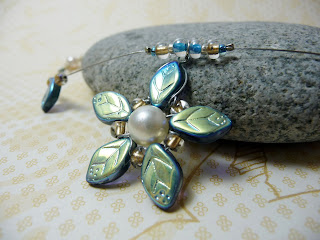 Another new technique-- I've figured out how to form the Czech leaf beads into a flower!!! This necklace features details all the way up the string, and it is reversible. That means that it was alot harder to make... but I'm so happy to have figured it out! ...it "only" required breaking two of my beads...