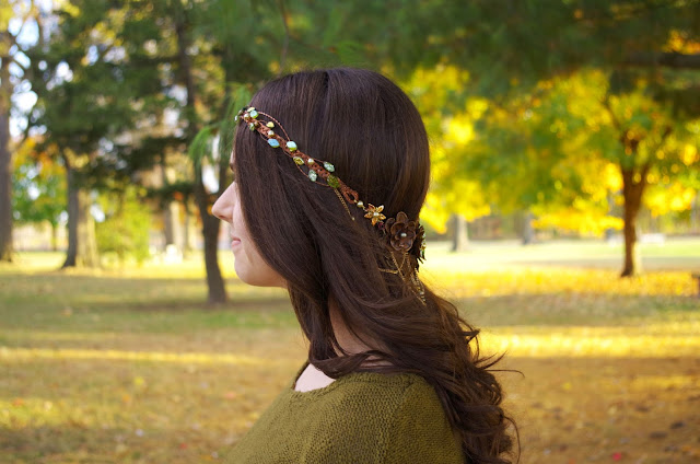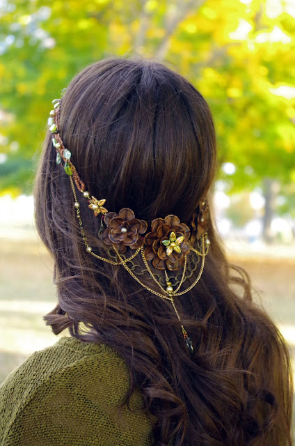 The original Entwife circlet was designed for a friend's Lord of the Rings costume just as I was beginning to sell jewelry. Since then, I've made some other variations; see those pictures here, here, and here.